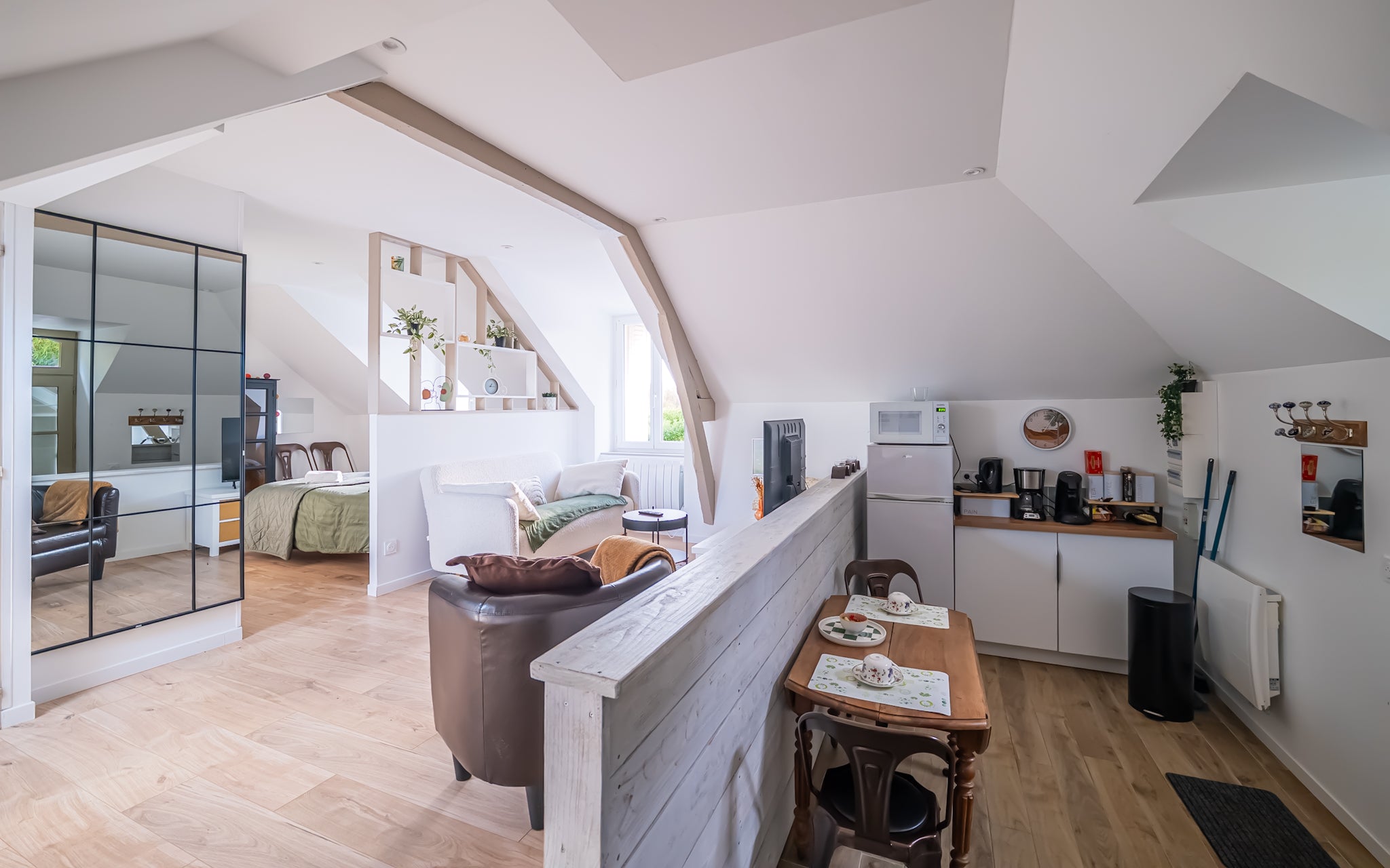 Le studio indépendant est lui composé d'une cuisine toute équipée, un séjour ainsi qu'un espace nuit et sa salle d'eau.