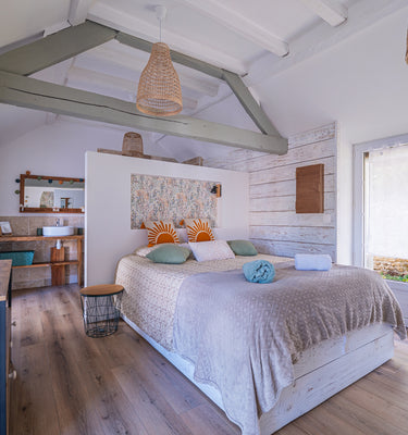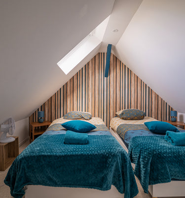 Un premier escalier mène à une suite spacieuse avec sa salle d'eau, un second escalier mène à une chambre avec sa salle d'eau attenante.